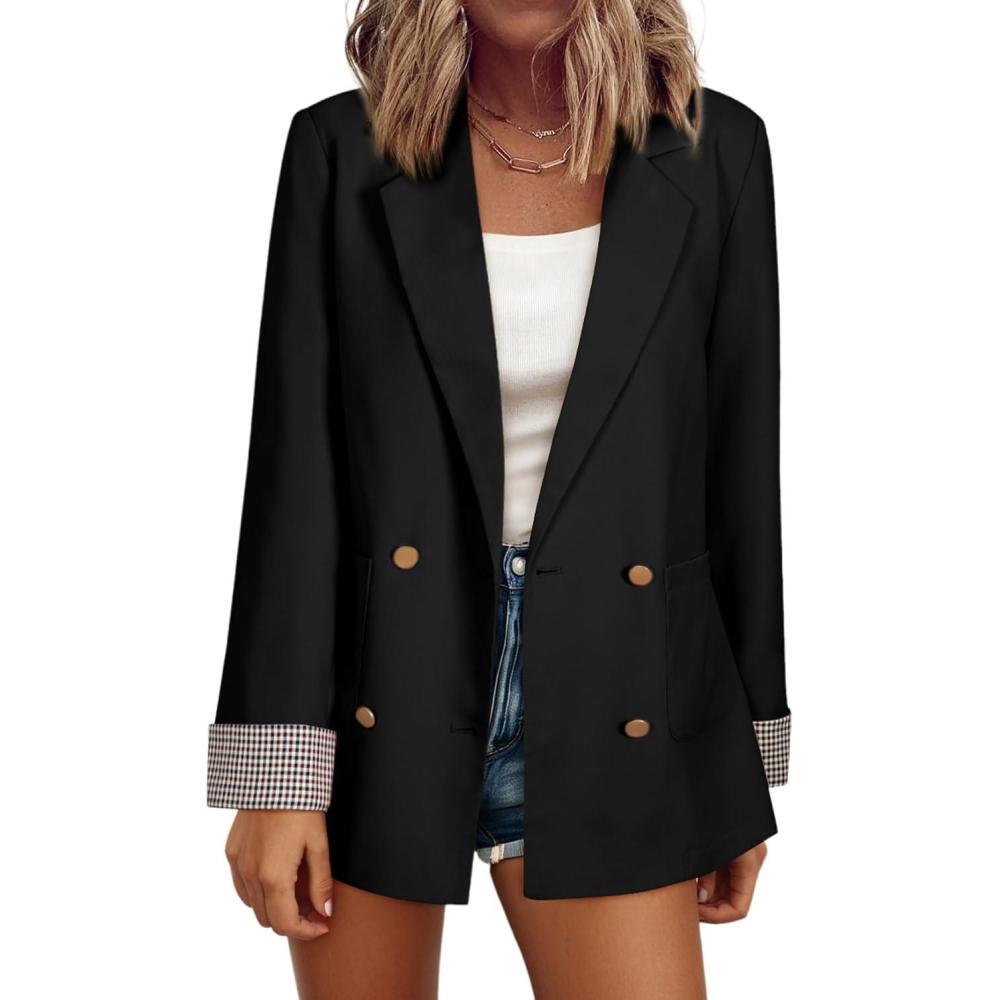 Score big savings on Happy Sailed Womens Blazers Plaid Cuff Double Breasted Open Front Business Casual Office Suit Jackets Work Outfits(Black) during our back-to-school sale. Limited quantities available.