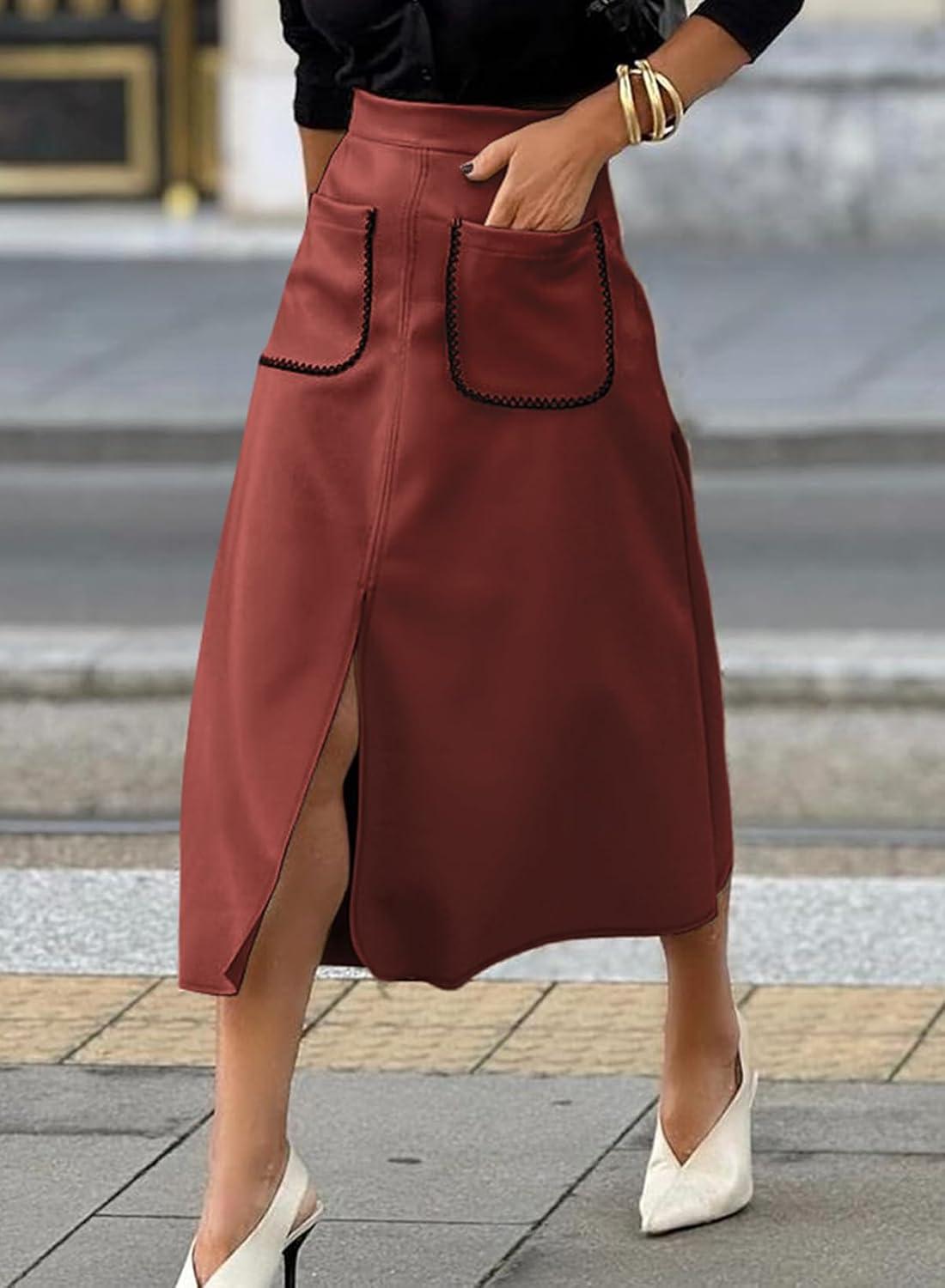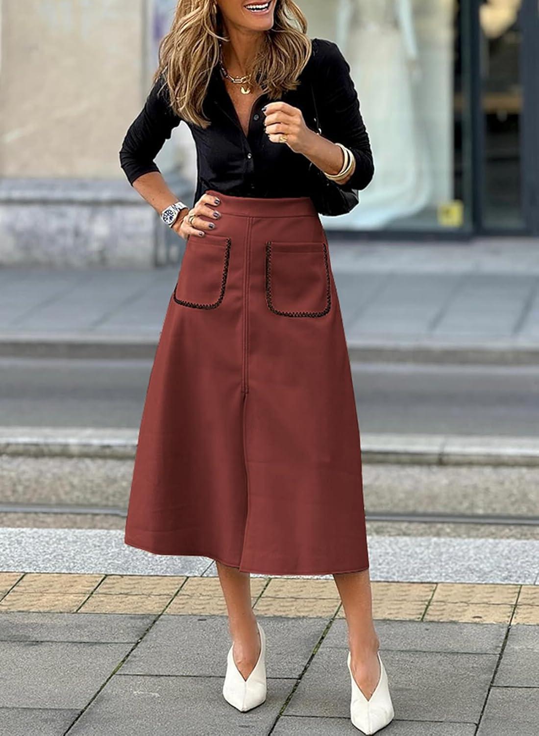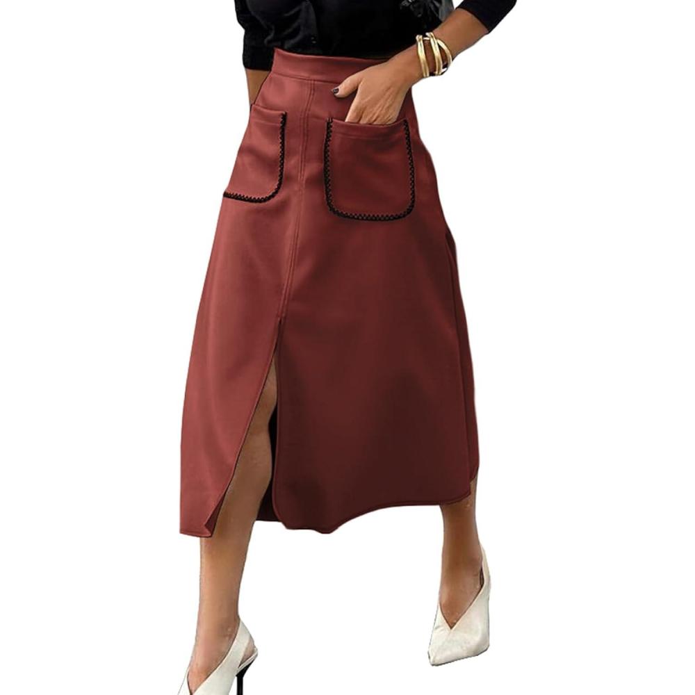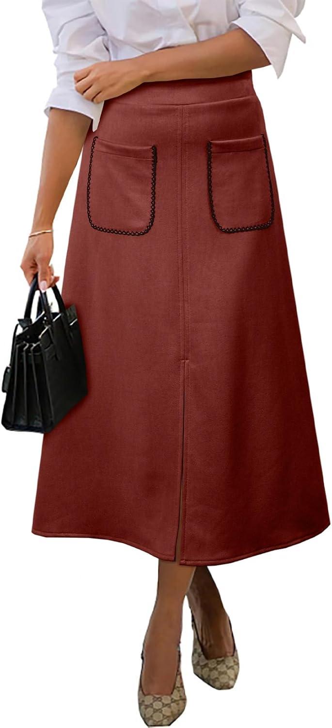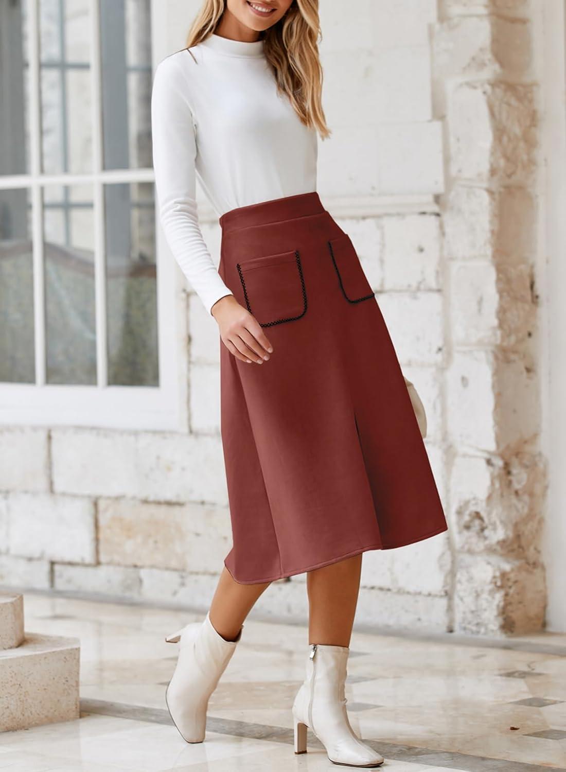 Get the Happy Sailed Women’s Faux Suede Skirt Elastic Waist Front Pockets A Line Midi Skirts Fall Winter Clothing(Red) you want at a price you can afford with our markdown sale.