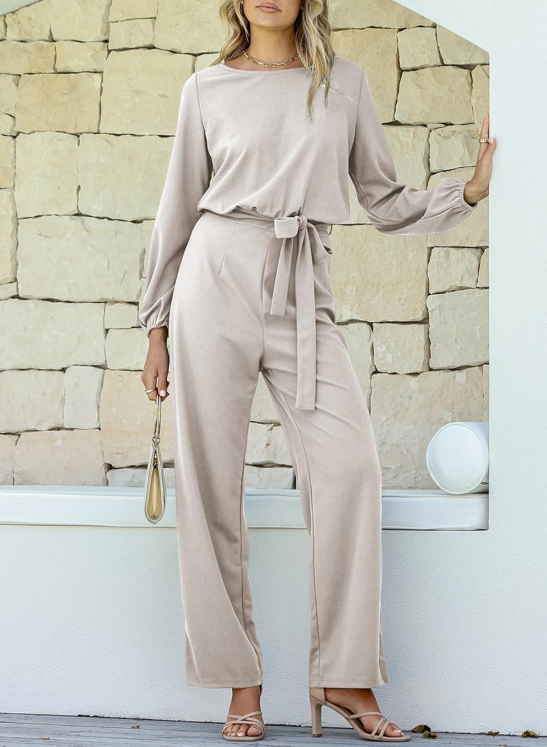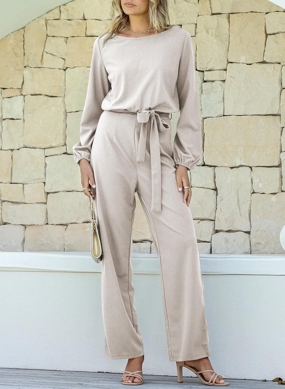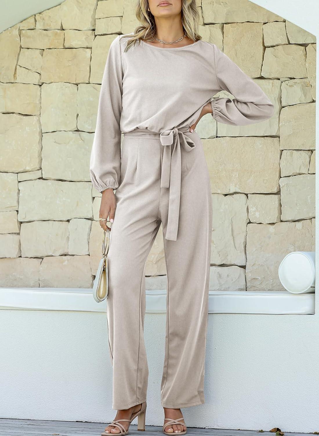 imageHappy Sailed Womens Loose Short Sleeve Belted Wide Leg Pant Romper Jumpsuit Business Casual One Piece OutfitsGreen