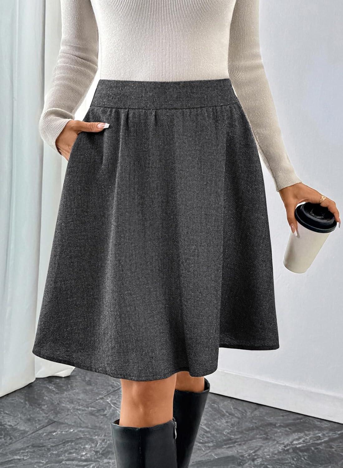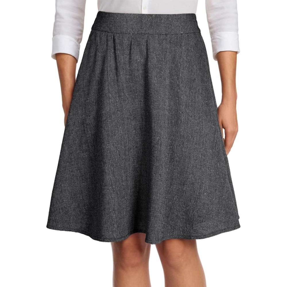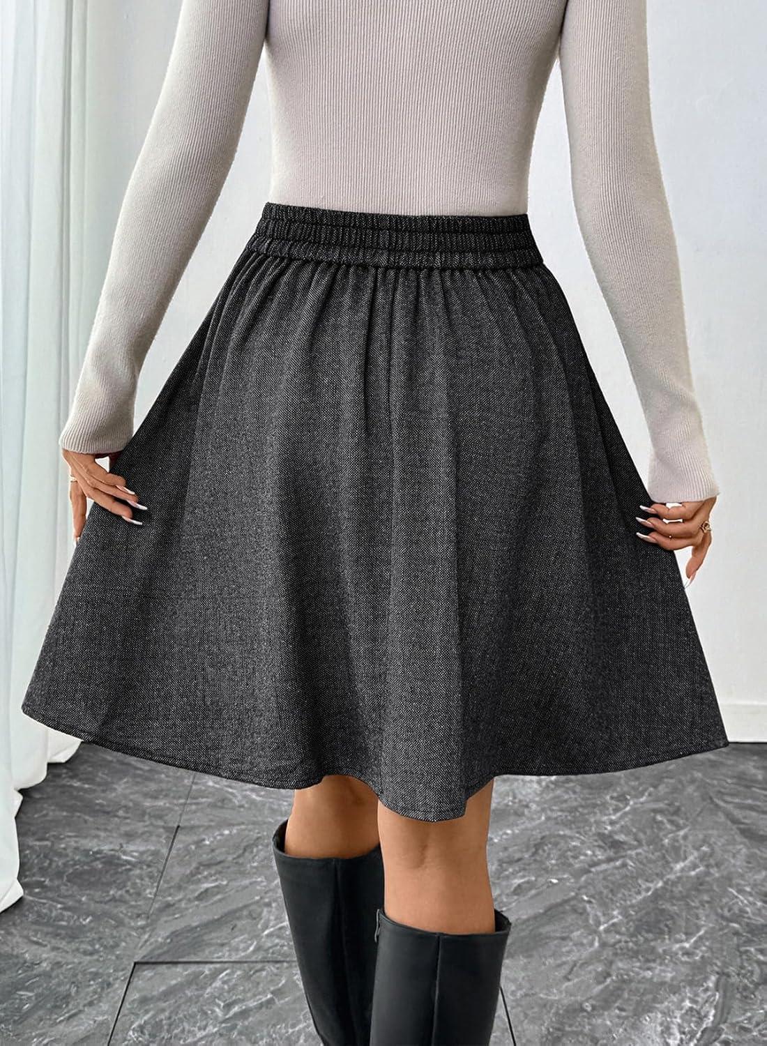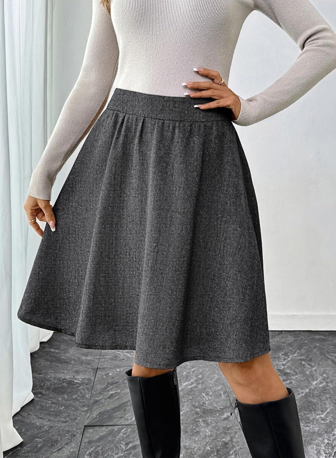 Happy Sailed Womens Winter Fall Tweed High Waisted Flared Mini Skater Skirt A Line Pleated Midi Skirts(Black)